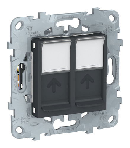 Розетка RJ45 категория 6 UTP Schneider Electric UNICA NEW (антрацит) двойная компьютерная с полем для надписи. - Привлекательный внешний вид.- Сокращение времени монтажа.- Термопластик АBS, устойчивый к УФ излучениям.