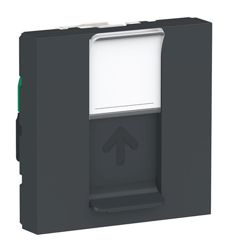 Розетка RJ45 категория 5е UTP Schneider Electric UNICA MODULAR (антрацит) двухмодульная одиночная компьютерная. - Привлекательный внешний вид.- Коннектор Actassi S-One.- Со шторкой и полем для маркировки.
