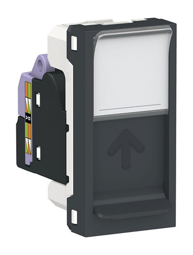 Розетка RJ45 категория 6 UTP Schneider Electric UNICA MODULAR (антрацит) одномодульная одиночная компьютерная. - Привлекательный внешний вид.- Коннектор Actassi S-One.- Со шторкой и полем для маркировки.