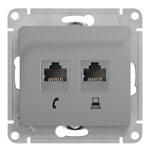 Механизм Schneider Electric Glossa (цвет алюминий) двойной розетки разъёмами RJ45 категория 5е и RJ11 предназначен для удобного и быстрого подключения вашего компьютера и телефона к соответствующим сетям.- Выполнен из материала PС+ASA, стойкого к УФ-излучению и появлению царапин.