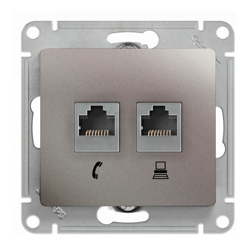 Механизм Schneider Electric Glossa (цвет платина) двойной розетки разъёмами RJ45 категория 5е и RJ11 предназначен для удобного и быстрого подключения вашего компьютера и телефона к соответствующим сетям.- Выполнен из материала PС+ASA, стойкого к УФ-излучению и появлению царапин.