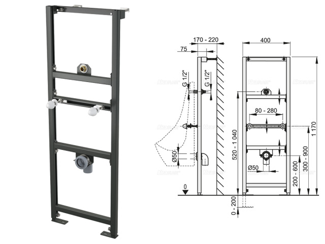 Описание: Рама ALCAPLAST для писсуара умывальника высота монтажа 1,2 м (A107/1200)
