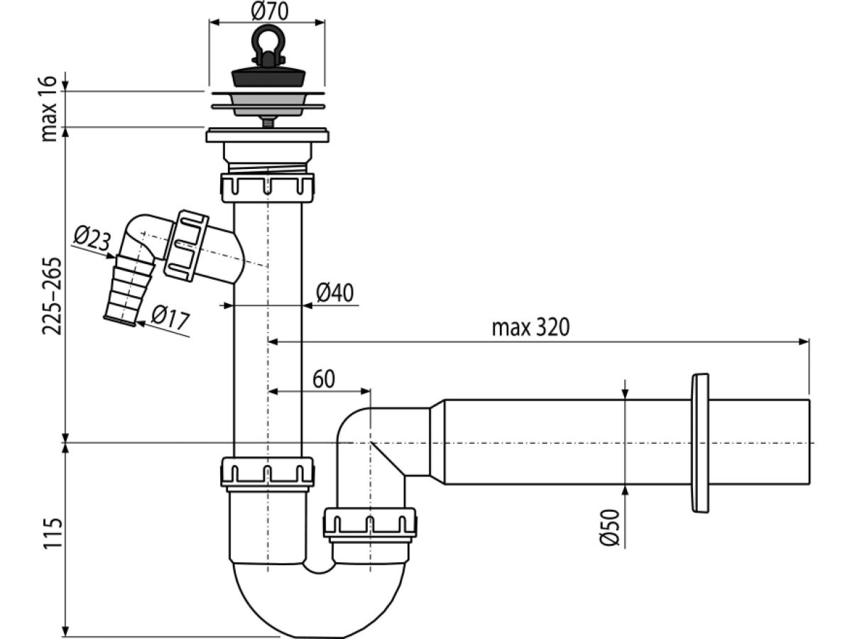СИФОН ТРУБЧАТЫЙ С НЕРЖАВЕЮЩЕЙ PEШEТКОЙ O70 И ШТУЦЕРОМОбласть применения: