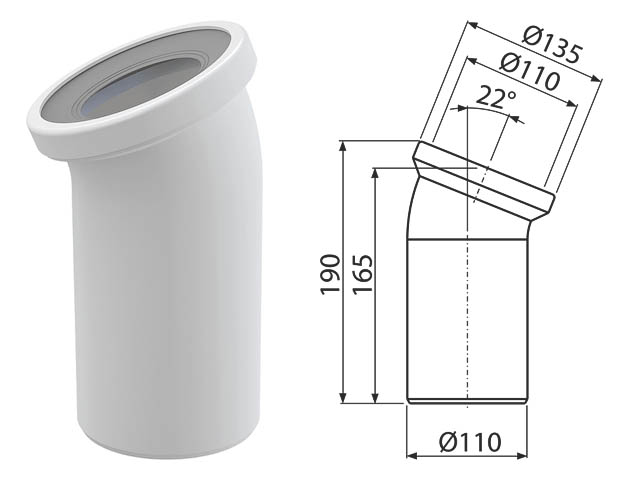 Колено для унитаза 22°, Alcaplast A90-22-BL-01