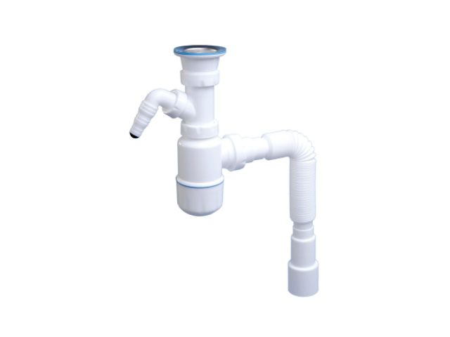 Сифон для умывальника с выпуском 70мм,с отводом для стиральной машины,с гибкой трубой 1 1/2"-40/50мм (NOVA) 1054