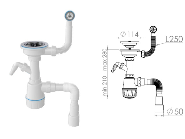 Описание: Сифон для керамогранитной мойки бутылочного типа, с большой колбой, с разборным выпуском 115 мм, с круглым переливом