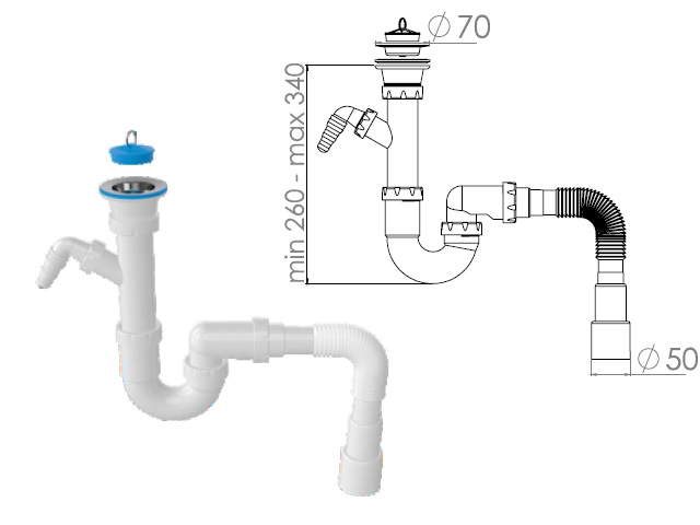 Описание: Сифон для мойки прямоточный, с разборным выпуском 70 мм