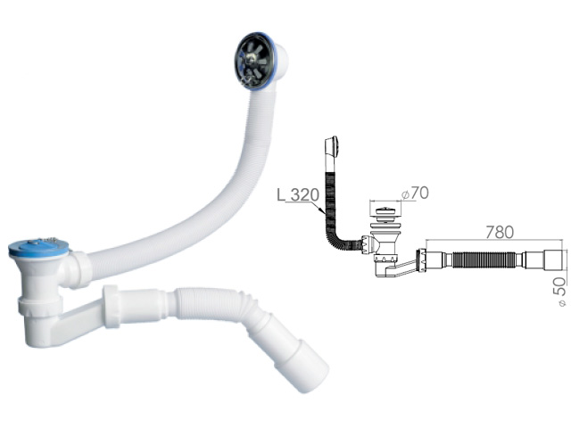 Описание: Сифон для ванны низкий h=120мм, выпуск 70 мм, с переливом;