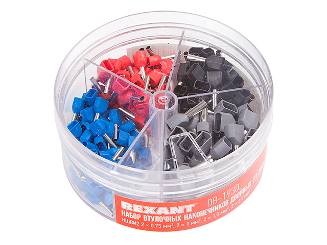 Набор втулочных наконечников двойных НШВИ2 (2х0.75 мм2; 2х1 мм2; 2х1.5 мм2; 2х2.5 мм2) в боксе (ТE-2 (REXANT) 08-1930