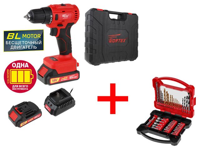 Набор оснастки WORTEX CDS 41;Бесщеточный мотор гарантирует надежность аккумуляторной дрели-шуруповерта. Инструмент оснащен быстрозажимным патроном 10 мм и мощным двигателем с крутящим моментом до 50 Н·м. Инструмент обладает функцией электронной регулировки частоты вращения (3 ступени). Для удобства работы предусмотрена подсветка рабочей зоны.* Аккумуляторы идущие в комплекте не подходят к следующим товарам: Аккум. циркулярная пила WORTEX CCS 1816 в кор. ALL1, Аккум. многофункциональный инструмент (реноватор) WORTEX СSM 3020 в кор. + аксессуары ALL1, Аккум. перфоратор WORTEX CRH 1820 в кор. ALL1, Аккум. перфоратор WORTEX CRH 1824 в кор. ALL1.Напряжение аккумулятора: 18 В;