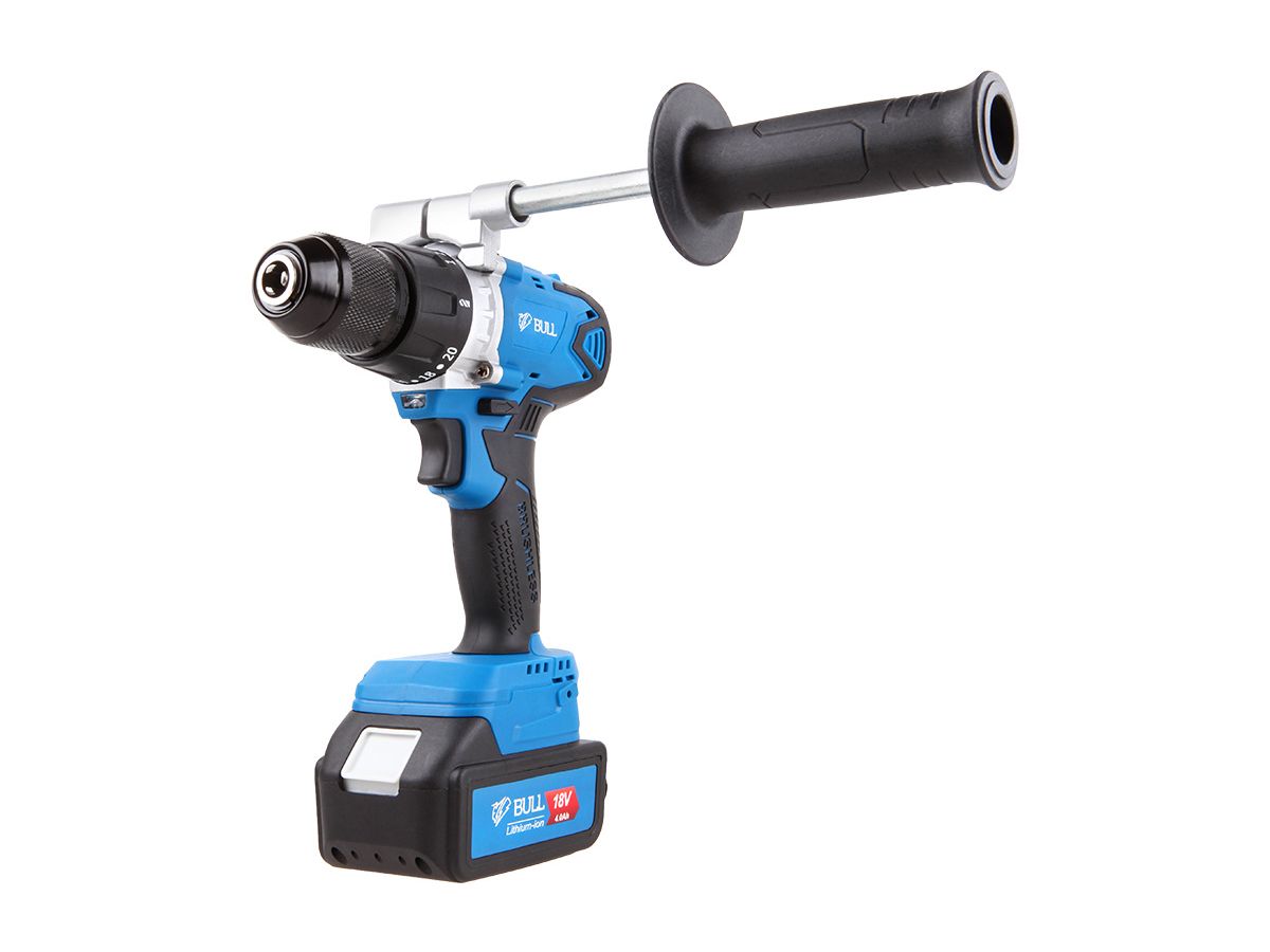 Бесщеточный двигатель способствует повышенной устойчивости дрели к нагрузкам, простоте в обслуживании инструмента. Модель оснащена мощным двигателем с высоким крутящим моментом до 80 Н·м, имеет металлический быстрозажимной патрон 13 мм. Для удобства работы предусмотрена подсветка рабочей зоны, индикатор уровня заряда. Для безопасности пользователя дрель-шуруповерт укомплектована дополнительной рукояткой. Аккумуляторная дрель-шуруповерт оснащена двухскоростным редуктором: первая скорость предназначена для закручивая крепежных элементов, вторая - для сверления отверстий. Благодаря регулировке крутящего момента инструмент можно использовать при работе c различными материалами. Эргономичная рукоятка имеет мягкую накладку для более комфортной и безопасной работы. Два аккумулятора ёмкостью 4 А/ч и зарядное устройство, входящие в состав комплекта поставки, обеспечивают непрерывную работу инструмента.