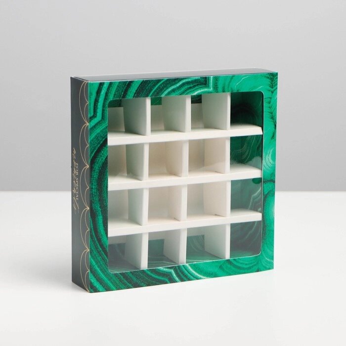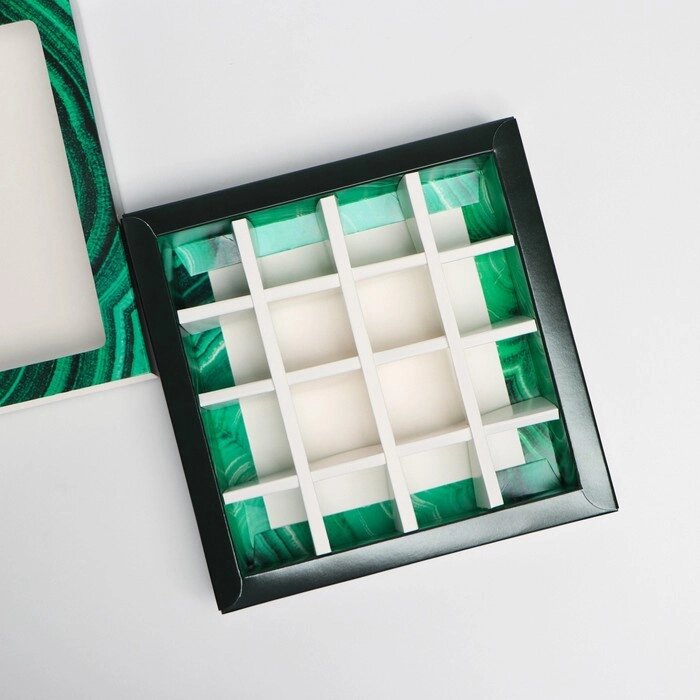 Коробка под 16 конфет с ячейками 'Малахит' 17,7 х 17,7 х 3,8 см (комплект из 5 шт.)