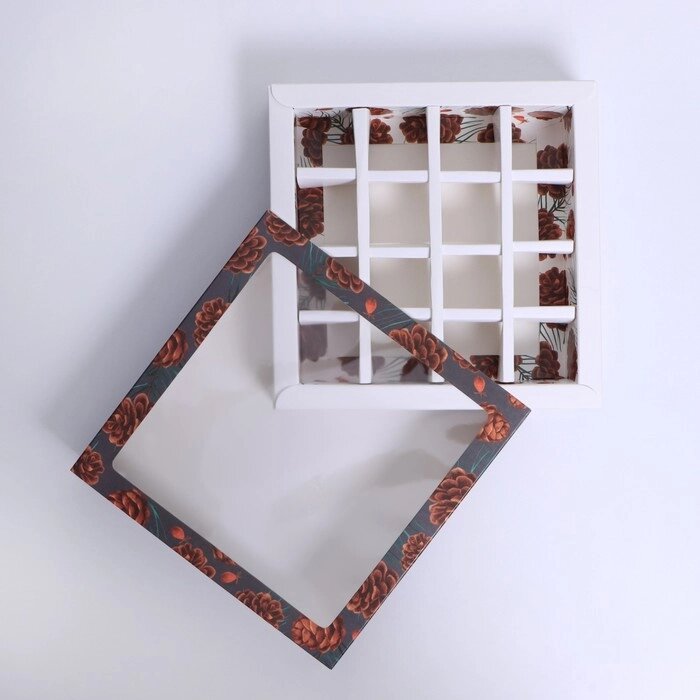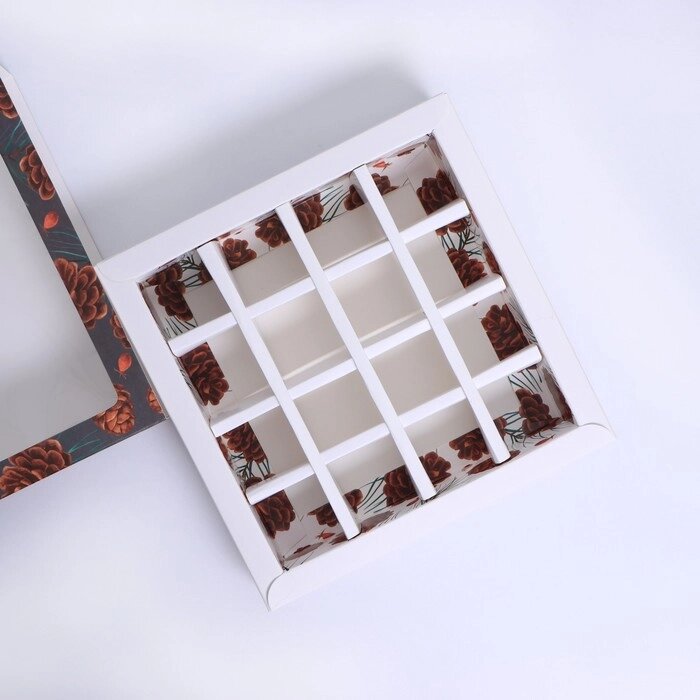 Коробка под 16 конфет с ячейками Miracles 17,7 х 17,7 х 3,8 см (комплект из 5 шт.)