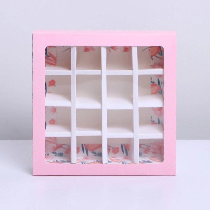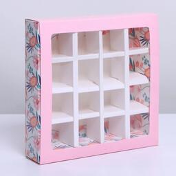 Коробка под 16 конфет с ячейками 'Расцветай' 17,7 х 17,7 х 3,8 см (комплект из 5 шт.)
