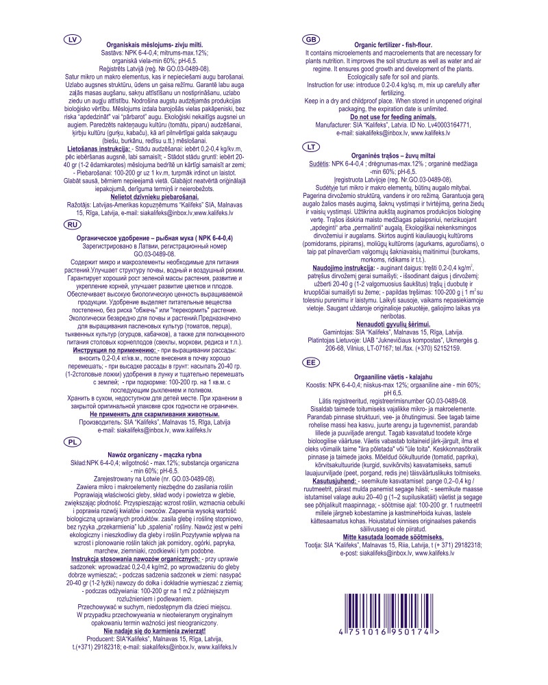 - Дополнительная информация Органическое удобрение. Сезон: лето
