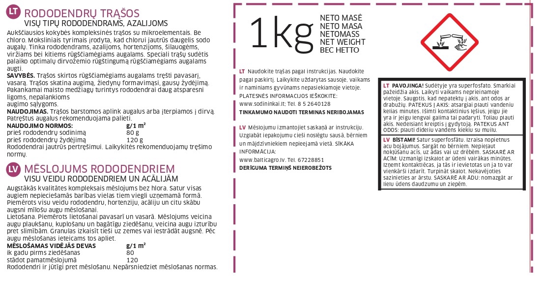 - Дополнительная информация Tinka rododendrams, azalijoms, hortenzijoms, šilauogėms, viržiams bei kitiems rūgštų dirvožemį mėgstantiems augalams tręšti. Speciali trąšų sudėtis palaiko optimalų dirvožemio rūgštingumą