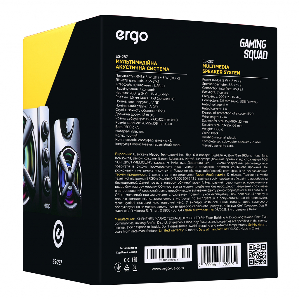 Мультимедійна акустична система ERGO ES-287 — те, що потрібне справжньому меломану. Дві великі колонки та сабвуфер гарантують чудове звучання будь-якого аудіоконтенту, а LED-підсвітка робить техніку ще стильнішою. Сучасний дизайн, підсвітка та можливість під'єднання до практично будь-якого носія звукового контенту — ось основні переваги моделі.