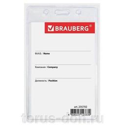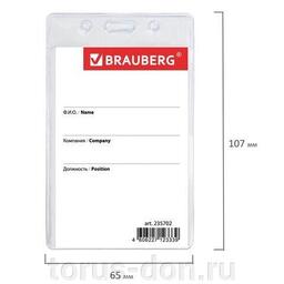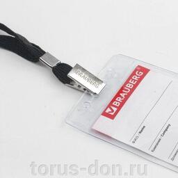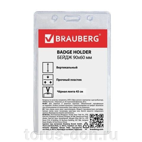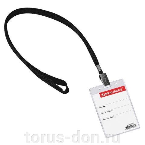 Бейдж вертикальный (90х60 мм), на черной ленте 45 см, BRAUBERG, 235702