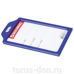 Бейдж вертикальный жесткокаркасный (85х55 мм), без держателя, СИНИЙ, BRAUBERG, 235745