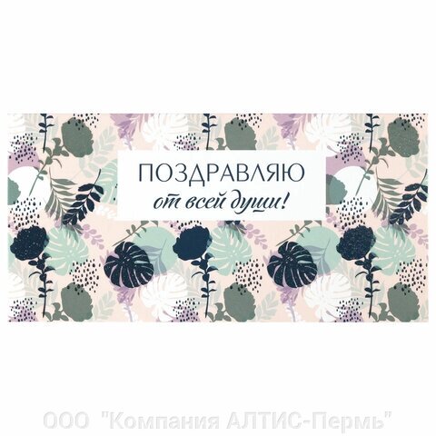 Конверт для денег ПОЗДРАВЛЯЮ ОТ ВСЕЙ ДУШИ! Цветы, 166х82 мм, блестки, ЗОЛОТАЯ СКАЗКА, 113753