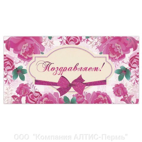 Конверт для денег Поздравляем, 166х82 мм, блестки, цветы на белом, BRAUBERG, 128701