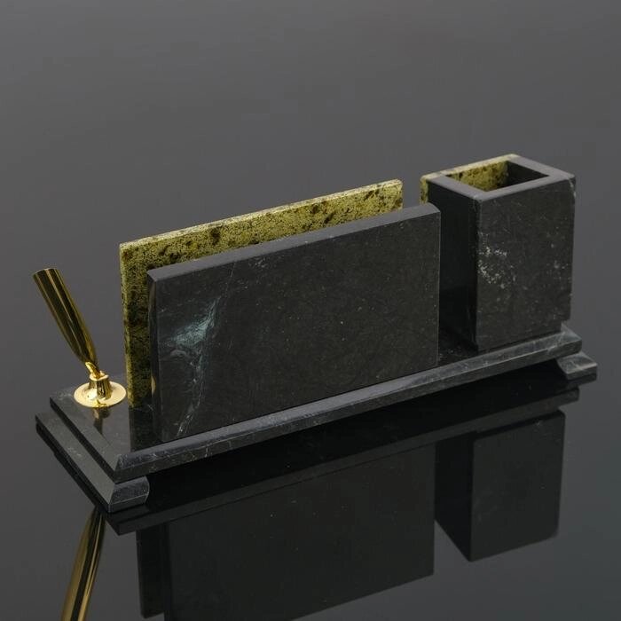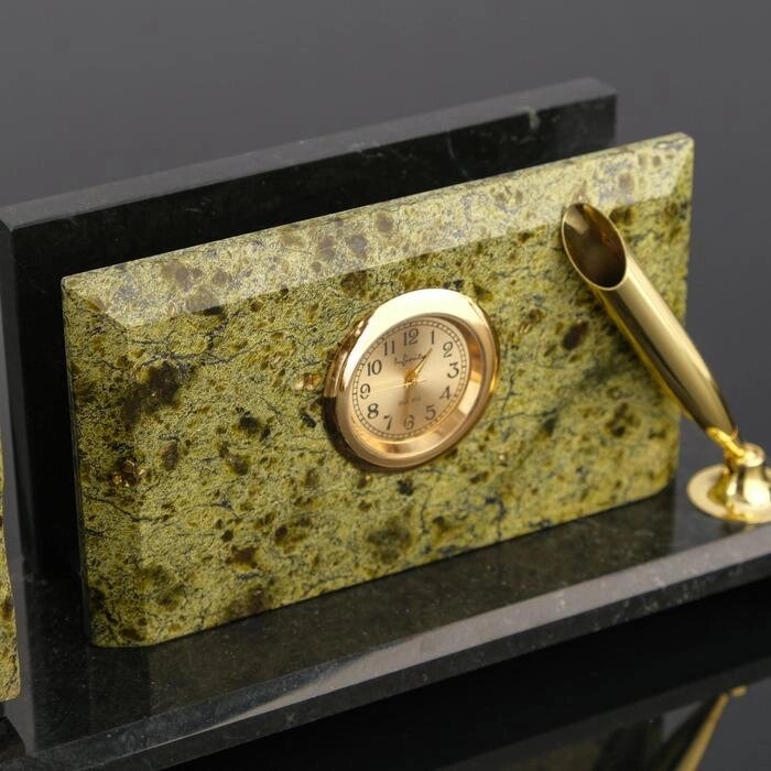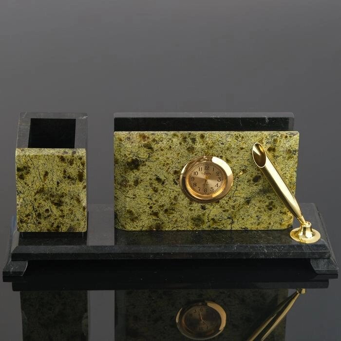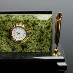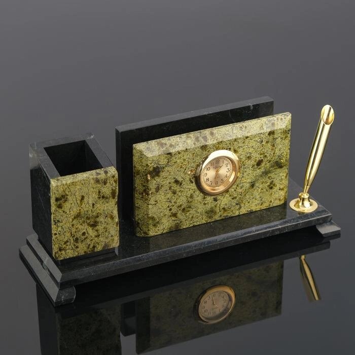Набор письменный «Змеевик»часы, визитница, подставки для ручек