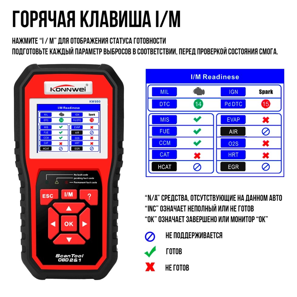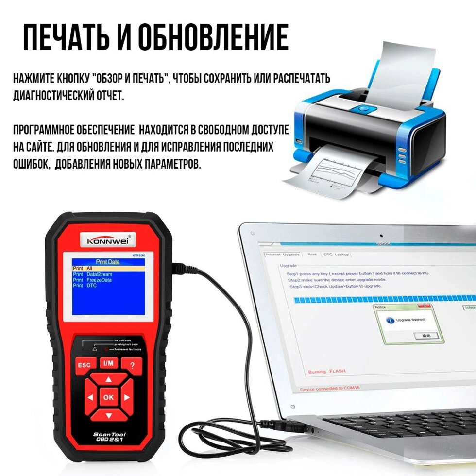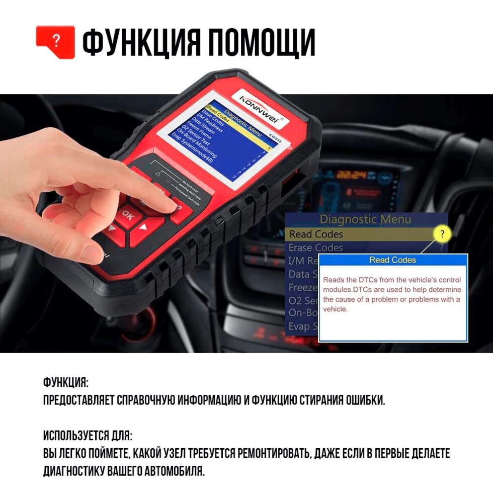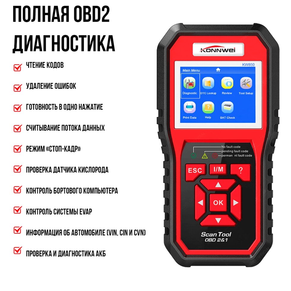 Konnwei KW-850 Автосканер OBD (OBD2, CAN)