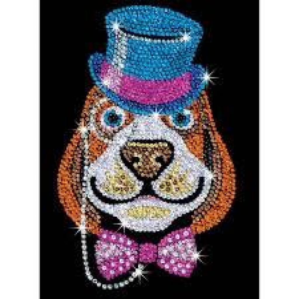 Кумедний та інтелігентний песик у капелюшку. Таку чудову і сяючу картину можна зробити власноруч з набором для творчості від Sequin Art. У комплекті є все необхідне: трафарет, основа, кольорові паєтки, металеві шпильки та інструкція. Готова картина розміром 25х34 см мерехтітиме і підійматиме настрій! Аплікації із паєток – цікавий та захопливий процес, який вимагає уважності, посидючості та охайності. Рекомендований вік: від 6 років.