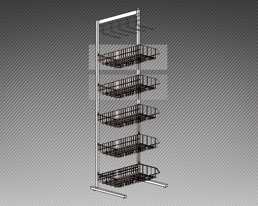 - Количество корзин и дисплеев 5 прямых корзин+1 дисплей на 5 еврокрючков