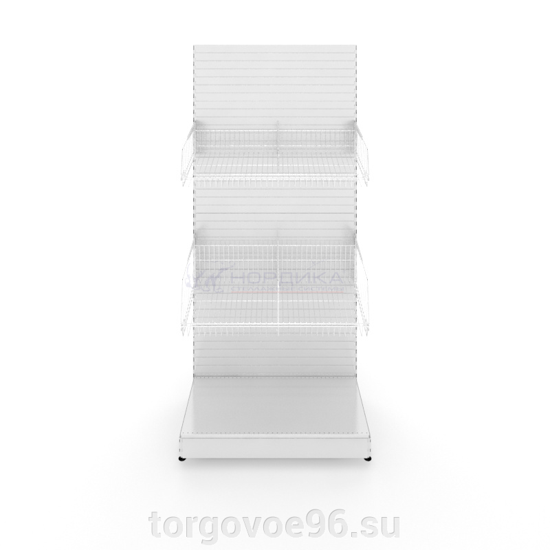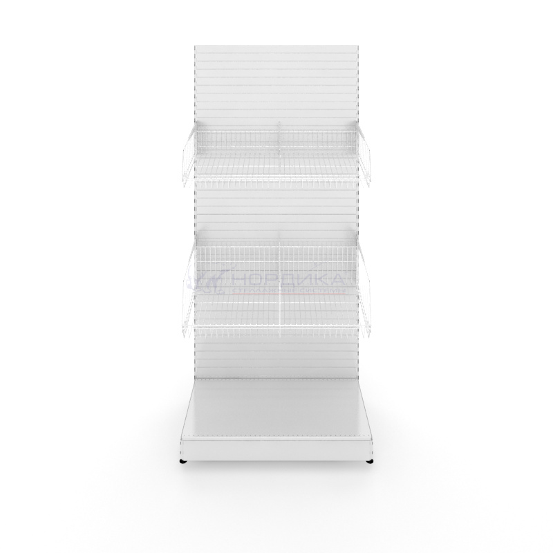 Металлический пристенный торговый стеллаж с навесными корзинами (1023х580х2250 мм) арт. СПК-50