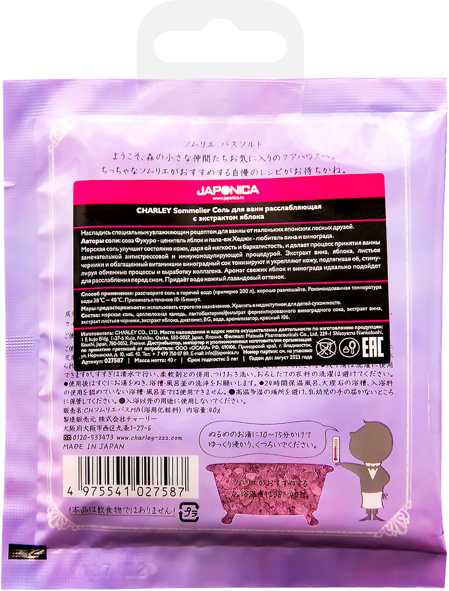 - Состав: морская соль, целлюлозная камедь, лактобактерии/фильтрат ферментированного виноградного сока, экстракт вина, экстракт листьев черники, экстракт яблока, диатомит, BG, вода, ароматизатор, красный 106