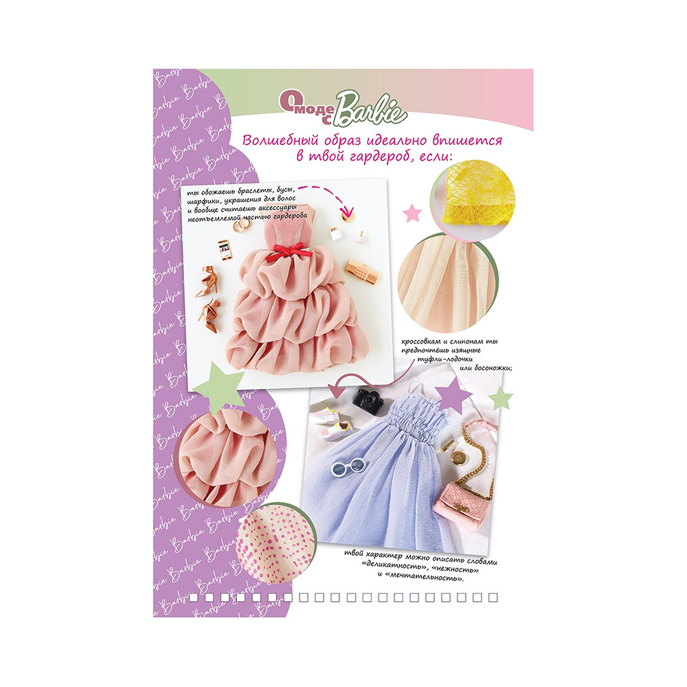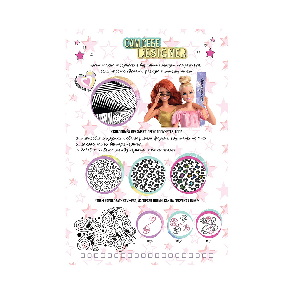 БАРБИ ДЕЛИТСЯ МОДНЫМИ СЕКРЕТАМИ! Ты обожаешь всё, что связано с модой и любишь рисовать? Тогда у самой известной модницы для тебя сюрприз!С новым творческим скетчбуком от Барби «Barbie. FASHION DESIGNER» ты:- узнаешь секреты ЧЕТЫРЁХ классных стилей в одежде и поможешь Барби принарядиться;- научишься подбирать модный образ по случаю;- разберёшься в цветовых сочетаниях и принтах;- нарисуешь свой идеальный образ с помощью трафаретов и наклеек от Барби;- получишь шанс стать самым юным модным дизайнером в мире!Внутри скетчбука ты найдёшь:- 20 страниц модных секретов- 40 листов для рисования фэшн-эскизов- 2 трафарета для создания фэшн-эскизов- 2 листа цветных наклеек для создания фэшн-эскизовСкорей хватай карандаши, фломастеры, ручки или краски и вперёд, в яркий мир моды вместе с Барби!Размер скетчбука: 172 х 255 мм.Сообщить о неточности в описании