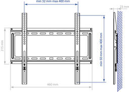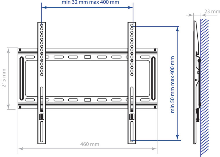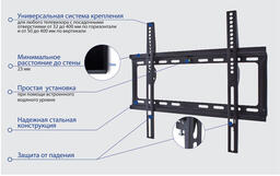 - Настенное крепление (VESA) 75x75 мм, 100x100 мм, 200x100 мм, 200x200 мм, 300x200 мм, 300x300 мм, 400x200 мм, 400x300 мм, 400x400 мм