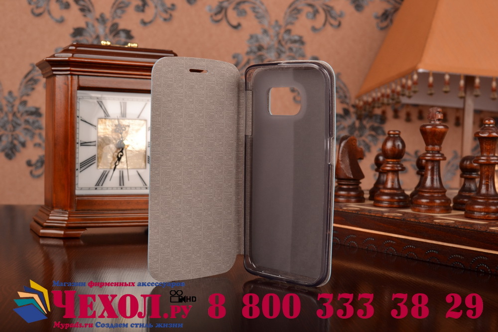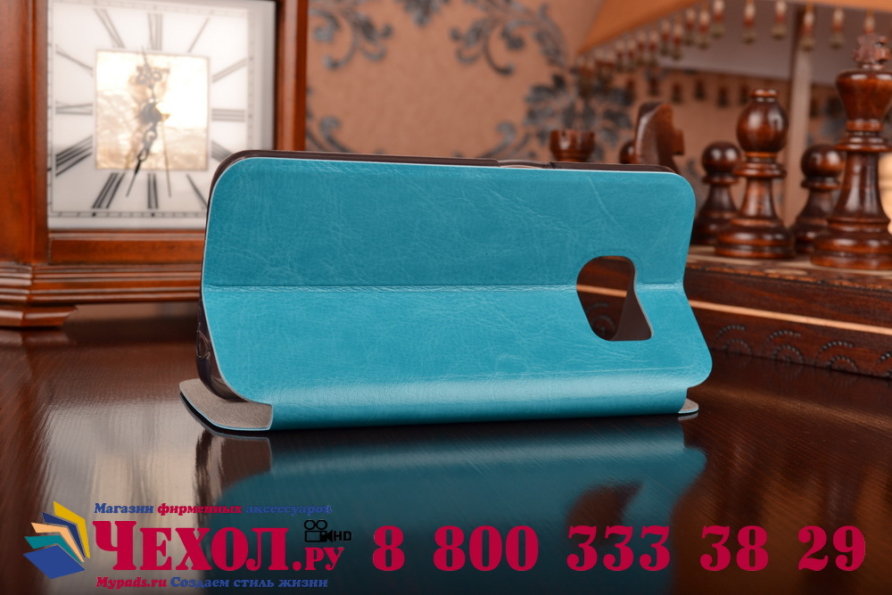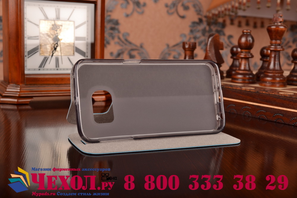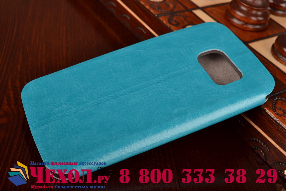 Чехол-книжка MyPads для Samsung Galaxy S6 Edge водоотталкивающий с мульти-подставкой на жесткой металлической основе голубой