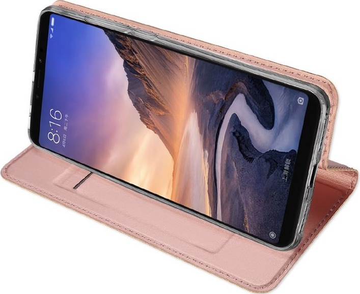 Чехол-книжка MyPads для Xiaomi Mi Max 3 водоотталкивающий с мульти-подставкой на жесткой металлической основе розовый