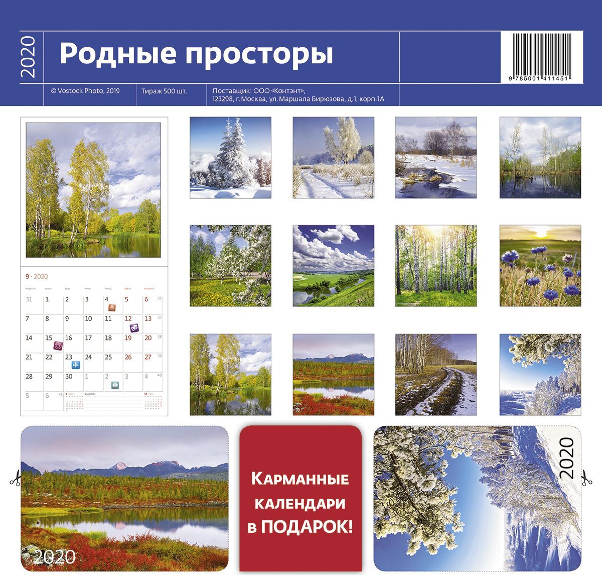 Календарь Контэнт Родные просторы, на 2020 год, 9785001411451