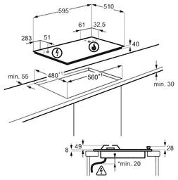 - Диаметр конфорок 70 мм; 128 мм; 70 мм; 54 мм