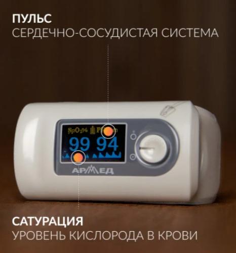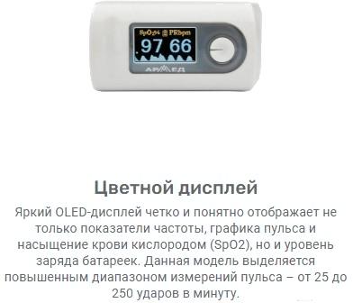 • Индикация сатурация (SpO2), пульс, индикатор заряда батареи