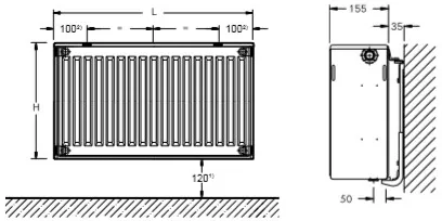 Стальной радиатор, панельный, подводка теплоносителя боковая, тепловая мощность 534 Вт.