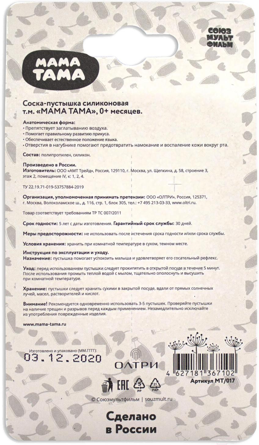 Пустышка Мама Тама Матроскин. Анатомическая Силиконовая / MT/017 (синий)