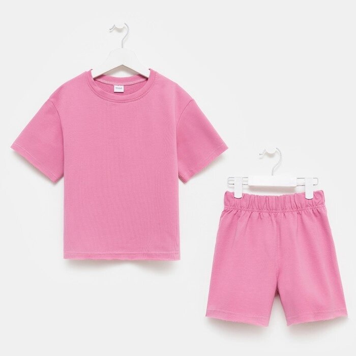 Костюм детский (футболка, шорты) MINAKU: Casual Collection цвет пудровый, рост 134