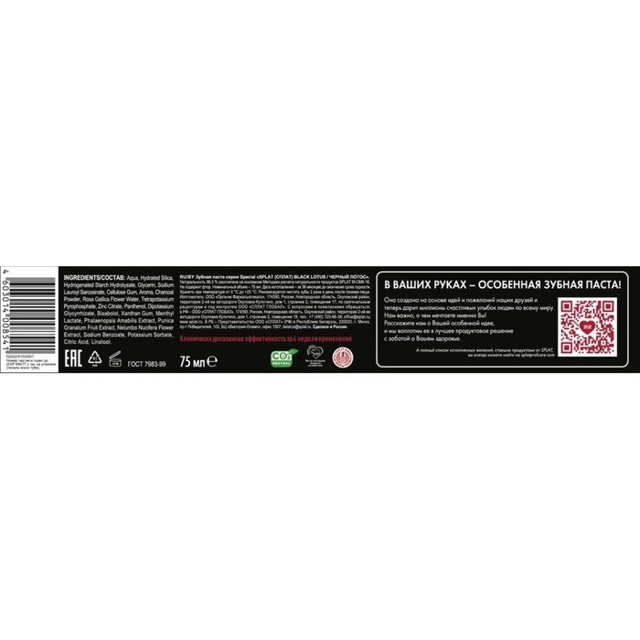 Зубная паста Splat Черный лотос, 75 мл