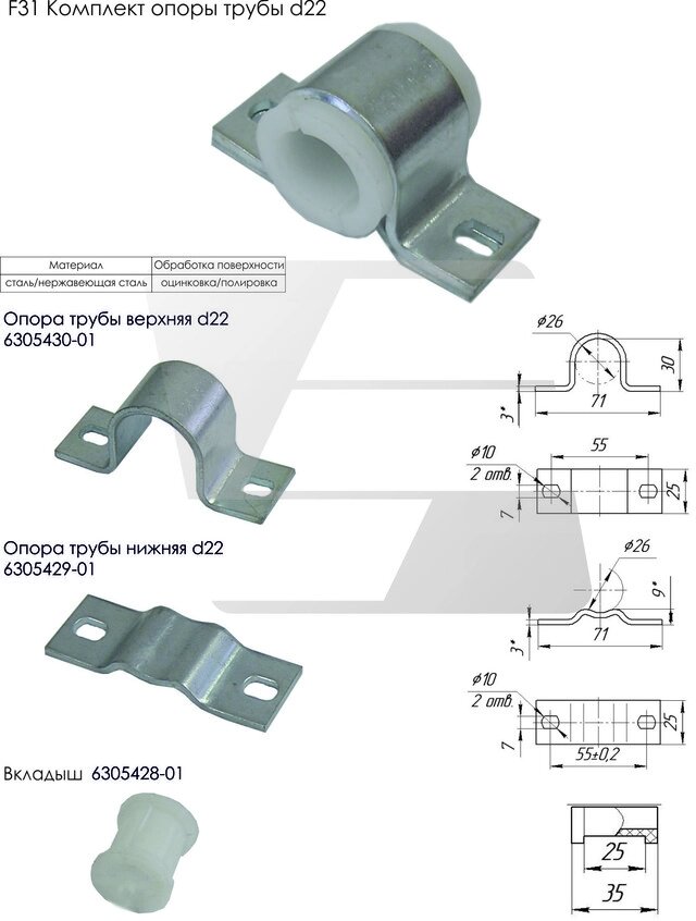 Комплект опоры трубы d22 оцинкованный F31