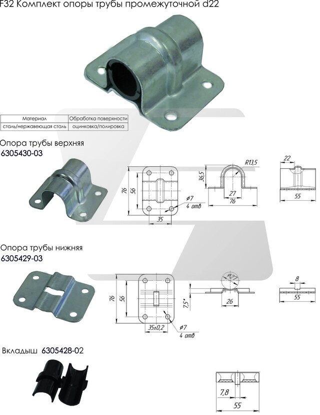 Комплект опоры трубы промежуточной d22 оцинкованный F32