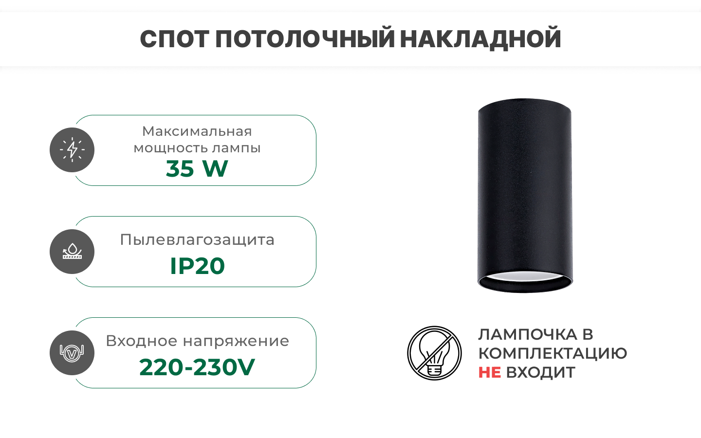 • Максимальная мощность лампочки 35 Вт
