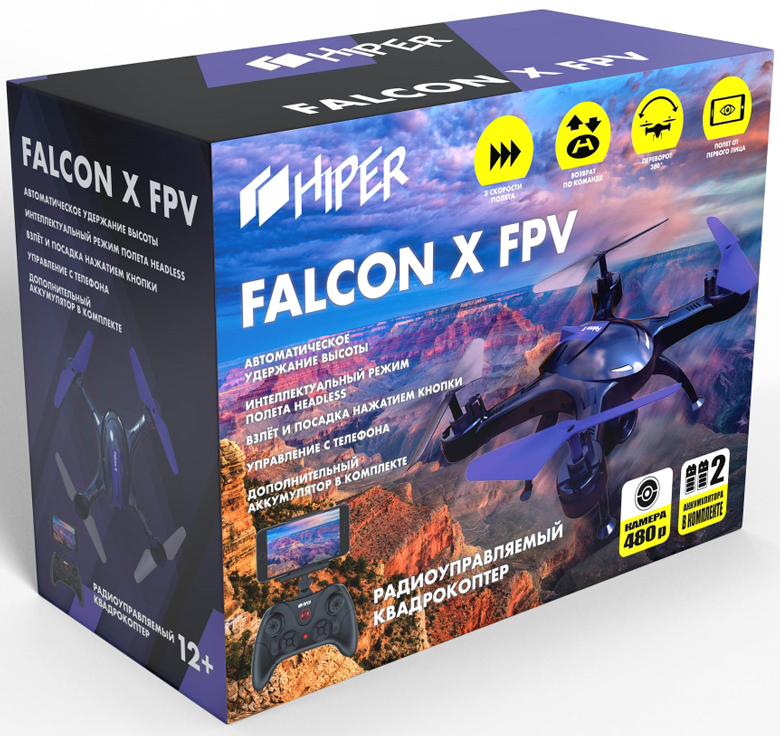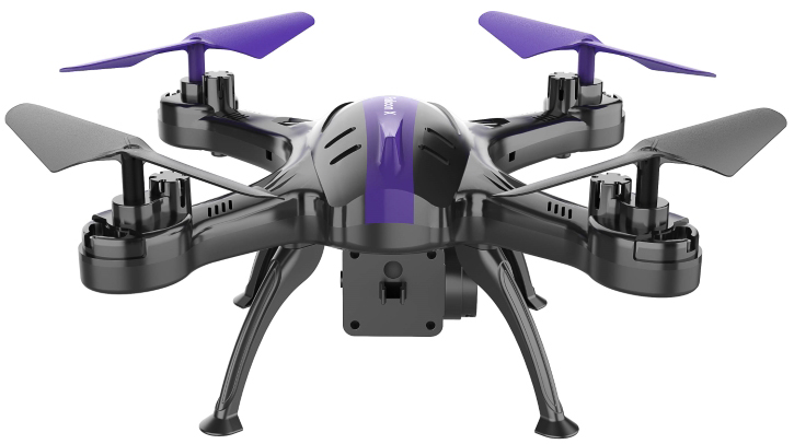 Тип: квадрокоптер. Материал: пластик. Двигатель: электрический двигатель. Частота радиоканала: 2.4 ГГц. Цвет: фиолетовый, черный. Время работы: 6 мин. Время заряда: 60 мин. Максимальная дальность действия: 60 м. Датчики: гироскоп, барометрический датчик. Функции: автоматический взлет, автоматическая посадка, автоматическое ориентирование (Headless Mode).