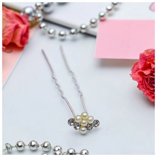 Шпилька для волос "Цветок" 1.2*6.5 см, стразы и бусины, 20 шт.