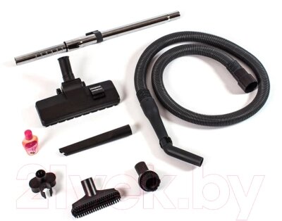 • В комплекте шланг для сухой уборки, удлинительные пластиковые трубы, насадки, крепление для аксессуаров, ароматизатор воздуха, пеногаситель, шампунь 500 мл, HEPA-фильтр цилиндр, пенный фильтр цилиндр