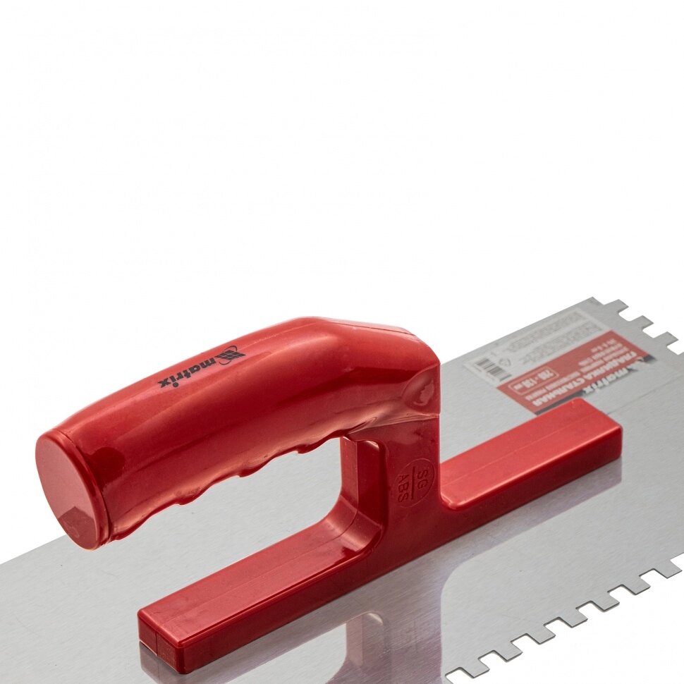 Гладилка из нержавеющей стали, 280 х 130 мм, зеркальная полировка, пластмассовая ручка, зуб 6 х 6 мм Matrix