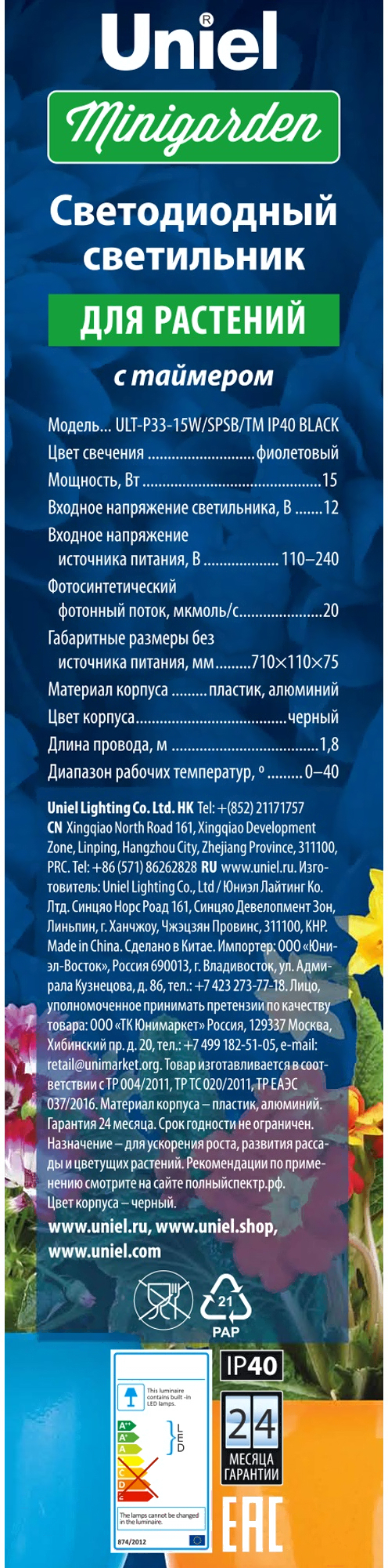 Светильник для растений Uniel ULT-P33-15W/SPSB/TM / UL-00004735 (черный)